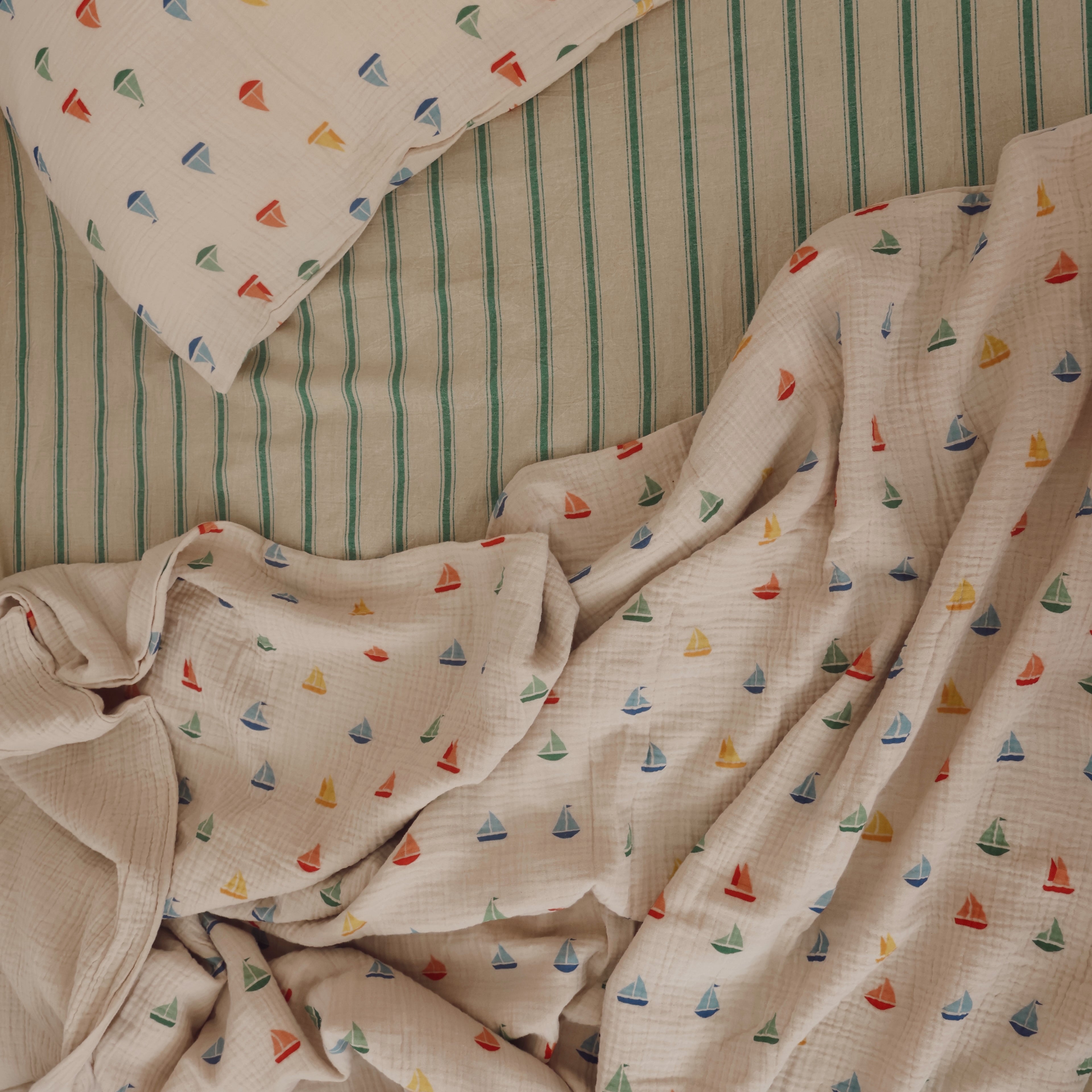 A dreamy blend of gentle movement, timeless charm and storybook nostalgia. Inspired by slow adventures and childhood wonder, the 'Boats & Balloons' bedding prints feature whimsical sail boats and hot air balloons, designed for seeet dreams and beautiful spaces.