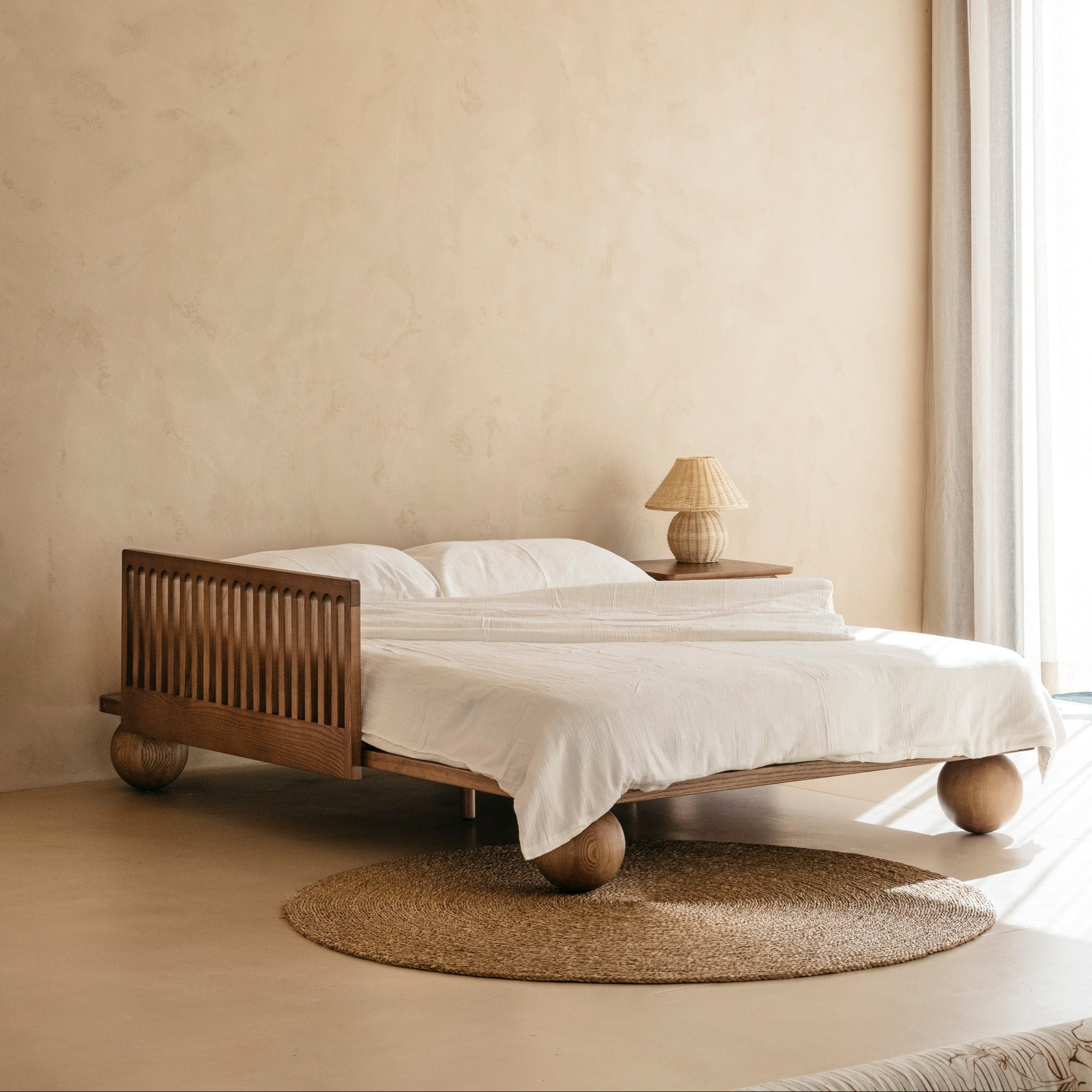 The Zali double bed features a streamlined design with clean lines and gentle curves. Crafted from solid ashwood with a walnut finish, revealing the wood’s natural grain. Sized perfectly for double mattresses, it creates a cosy haven for restful nights, while bringing a peaceful, balanced feel to your child's bedroom. Thoughtfully designed for adaptability, it’s compatible with the Sacred Bundle toddler side rail, making it a smart and stylish choice for families as they grow.