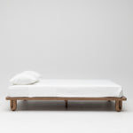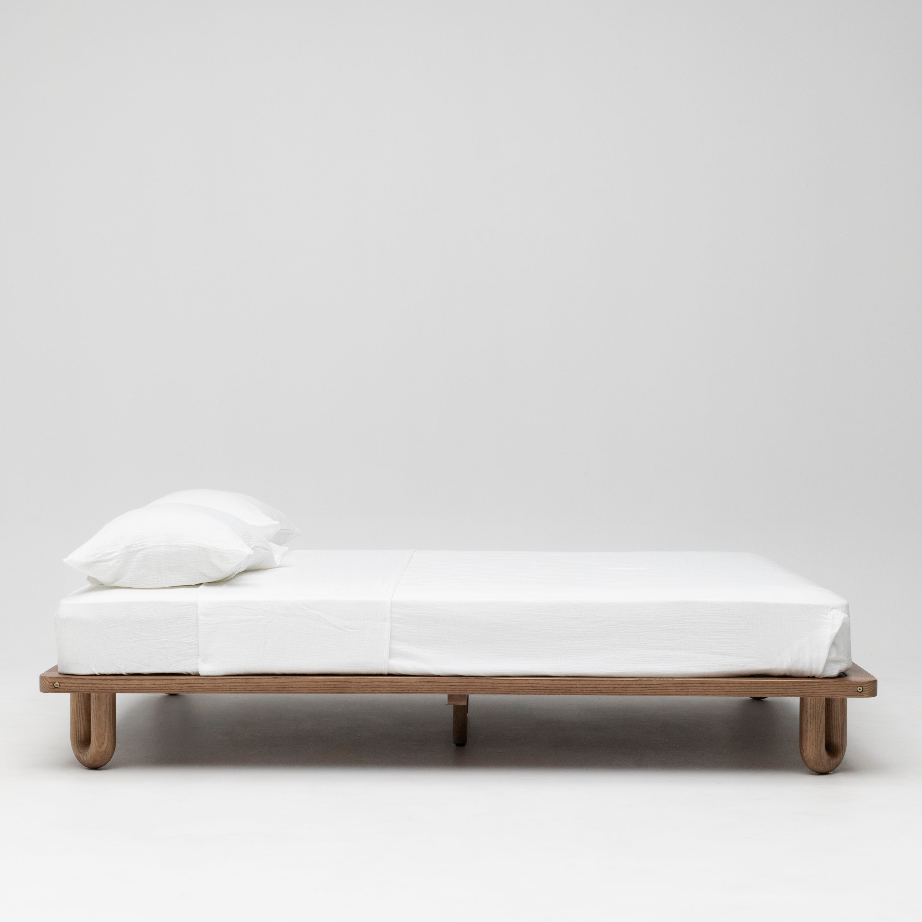 The Arche double bed combines refined charm with classic simplicity. Crafted from solid ashwood with a low VOC walnut finish, its clean lines and gentle curves beautifully highlight the natural grain of the timber. Perfectly sized for double mattresses, it creates a cosy retreat for restful nights and leisurely mornings, all while adding a calming, serene touch to your bedroom. Designed for versatility, it’s also compatible with the Sacred Bundle toddler side rail, making it a practical and stylish option for growing families.