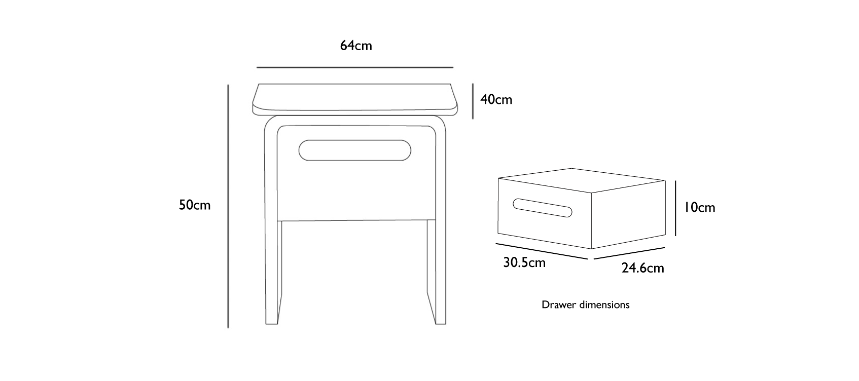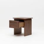 The Arche side table combines refined design and everyday usability, crafted from solid ashwood with a Low VOC walnut finish that highlights its natural grain and gentle, curved edges. With a single soft-close drawer, it provides a convenient storage option for your bedside or living area. A versatile piece that brings both style and functionality to any room with its mindfully crafted details.