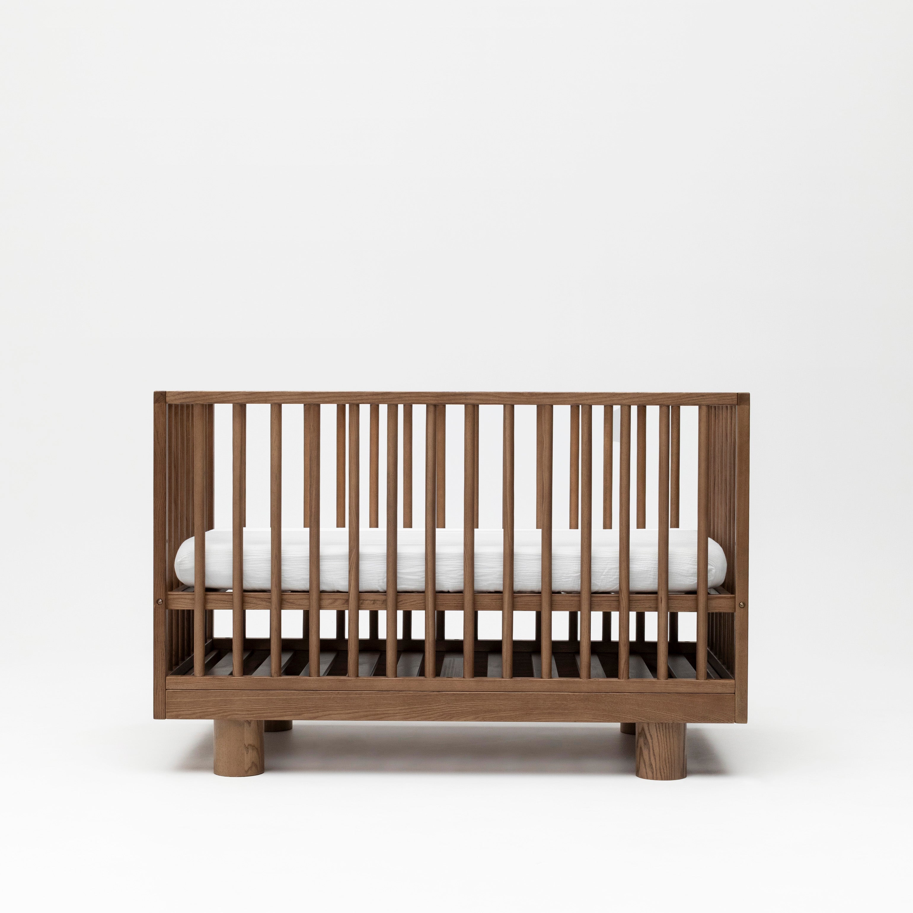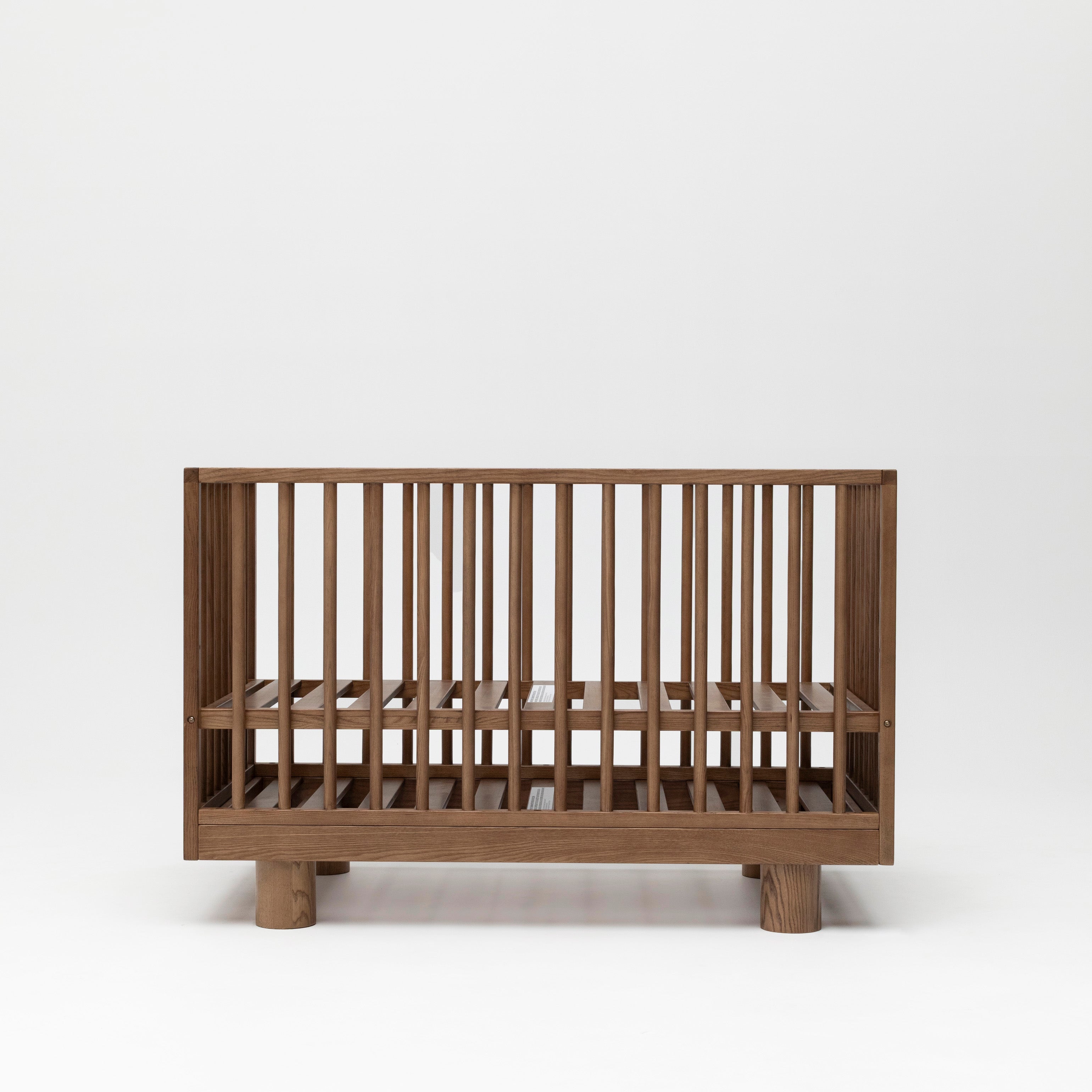 The Hendrix baby cot is the perfect blend of minimalist style and timelessness – offering a sleek, universal design to complement your nursery. This contemporary meets classic cot is constructed entirely of solid ashwood with a low VOC walnut finish. With two adjustable mattress heights and an included conversion kit, it easily transforms into a toddler bed. Designed to pair with its Hendrix buffet counterpart, the Hendrix pair offers a sturdy, sophisticated edge to any home aesthetic.