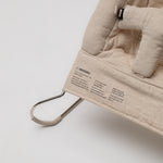I love the warmth of the fabric and the softness of the texture. It has extra sewn padding so it’s very comfortable. The design is very simple and chic, the bouncing function is easy to do but not overly sensitive to movement so your baby will feel secure and safe. It comes with a handy thick canvas bag to store it in. It comes in two parts very easy to assemble and the entire fabric component comes off in one part so it’s easy to put in the washing machine.