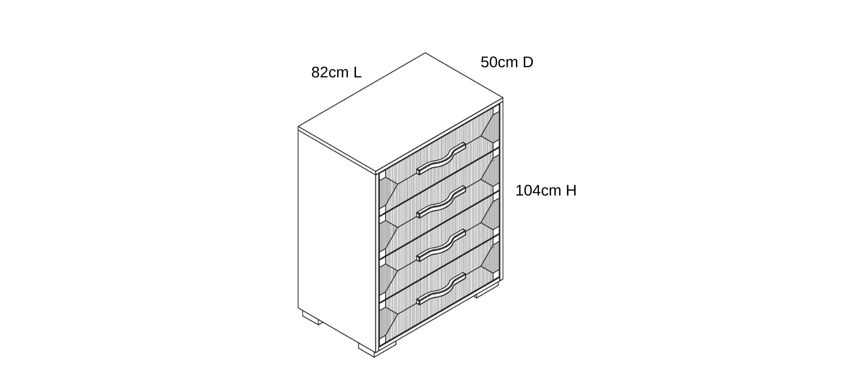 Designed to add luxury to compact spaces, the Myla tallboy exudes warmth and sophistication.