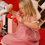 This 20-piece tea party set invites children to create their own charming tea time moments. With its handcrafted wooden pieces and colourful design, it’s perfect for pretend play and storytelling.
