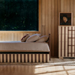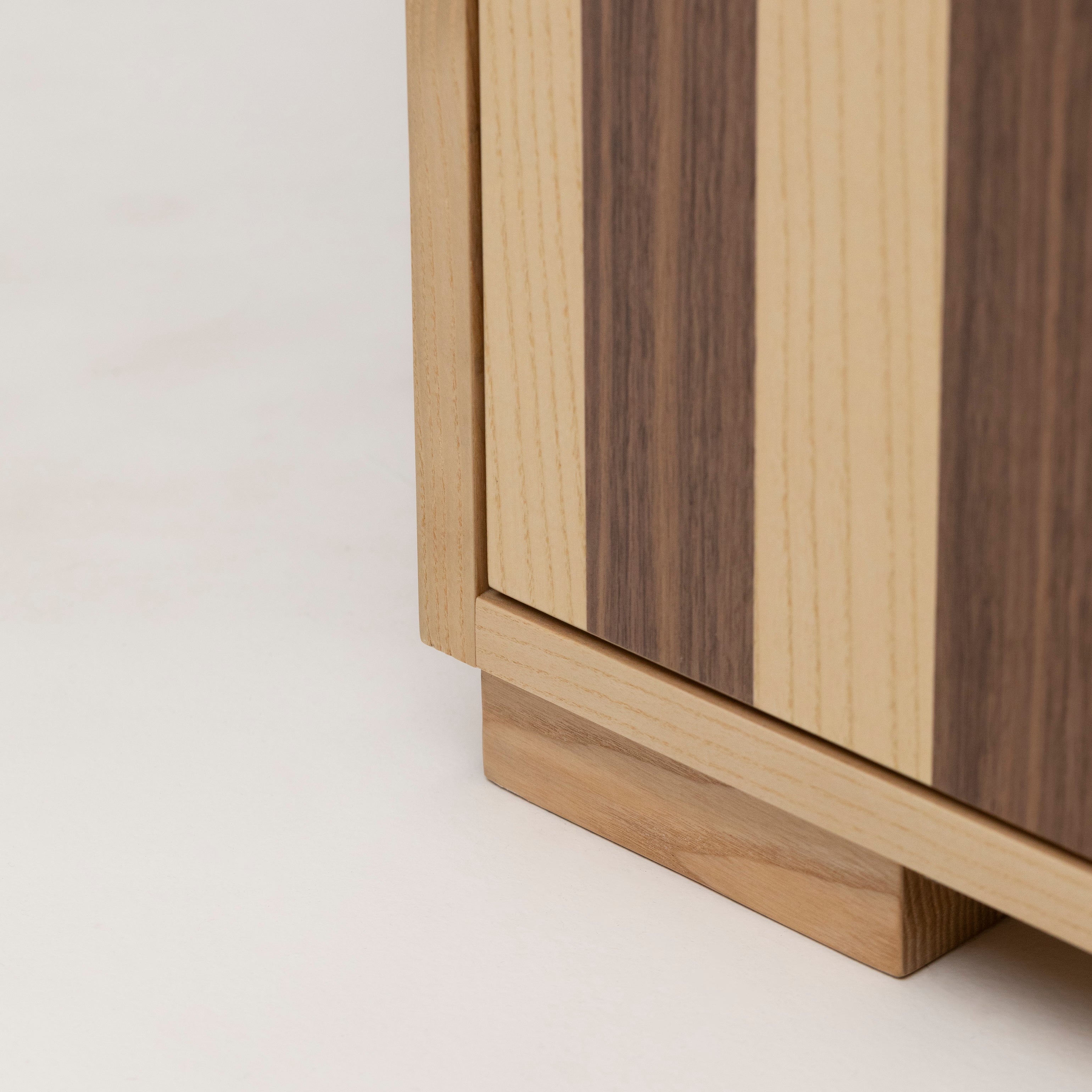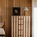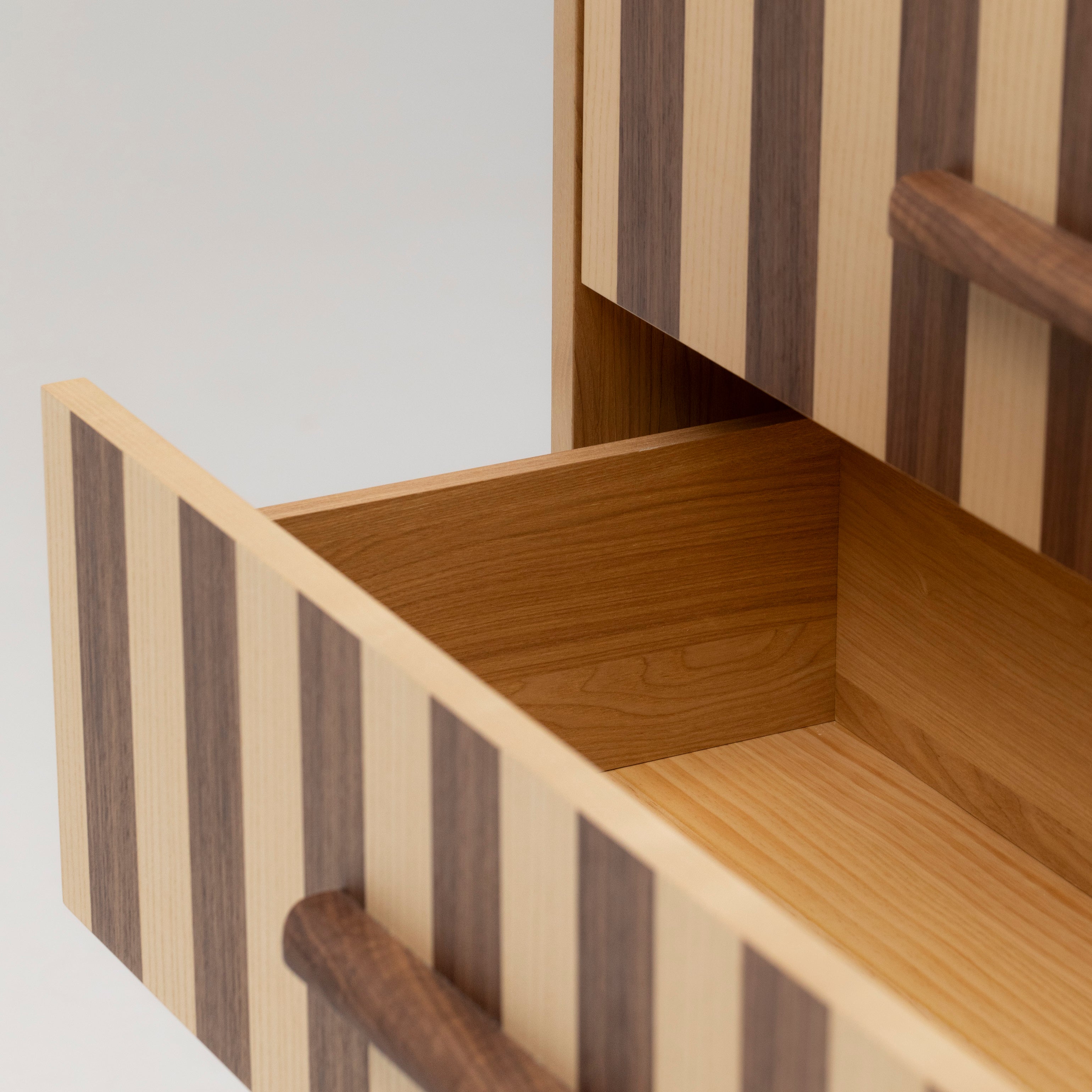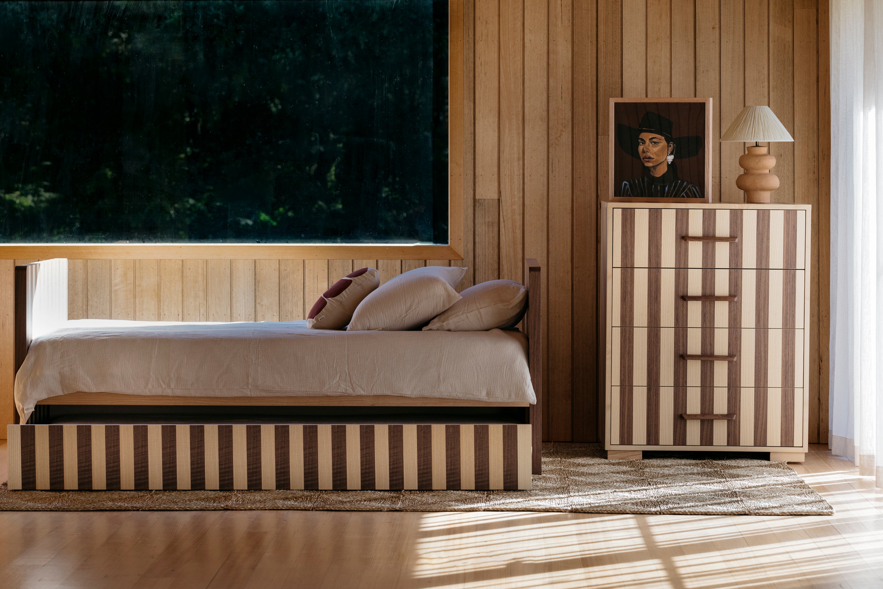 The 4-drawer tallboy brings thoughtful organisation into everyday living. This artisan-crafted piece offers elegant detailing with a stunning two-tone stripe in solid Ashwood alternating with walnut stain.