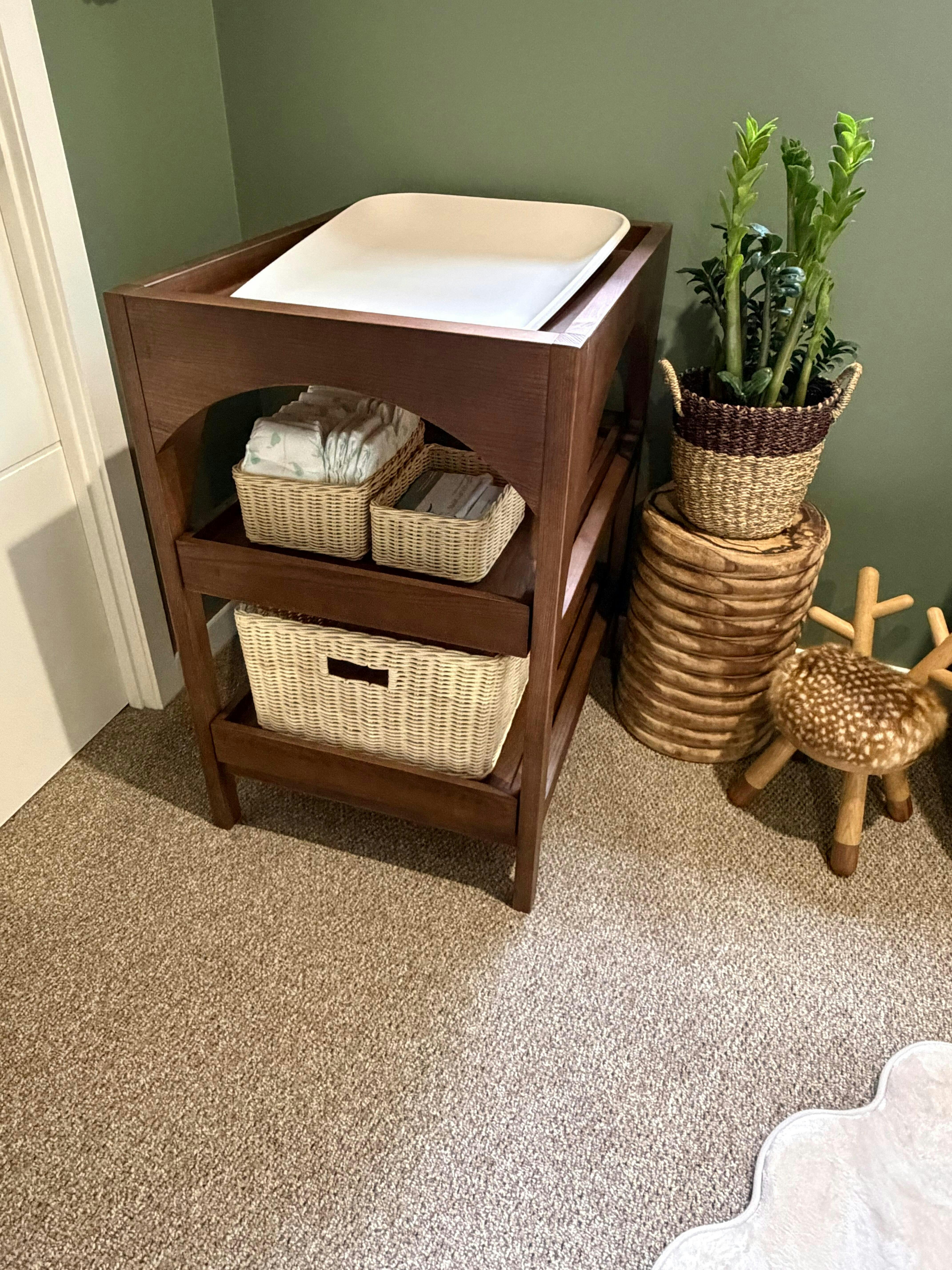 Enhance your nursery with the Yoli baby change table, a perfect blend of timeless style and eco-friendly craftsmanship. Made from sustainably sourced ashwood timber with a low VOC walnut finish, this modern piece highlights the rich tones and detailed grain of the wood, creating an heirloom-quality design built to last for generations. Thoughtfully designed for today’s parents, it brings ease and elegance to every special moment with your baby. Combining graceful aesthetics with smart functionality, it helps create a balanced, practical, and beautiful space for your little bundle.