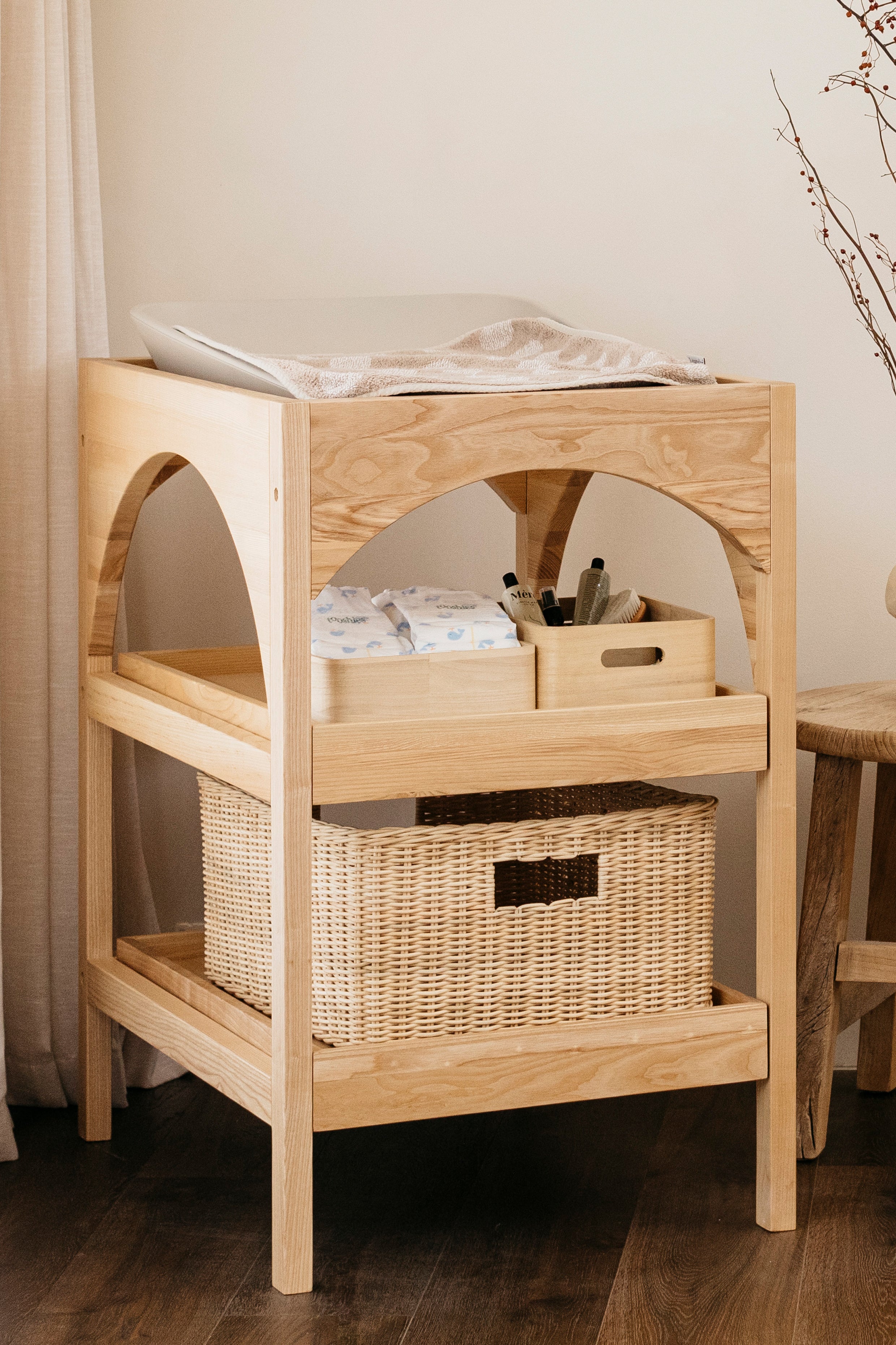 Elevate your nursery with the Yoli ashwood timber baby change table- an embodiment of timeless sophistication and environmental consciousness. Crafted from sustainably sourced ashwood timber, this contemporary piece showcases the wood's versatile tones and intricate grain details, delivering an heirloom-quality design destined to endure generations. Designed for the modern parent, enhancing the ease and grace of those precious moments with your baby. Seamlessly blending style and practicality, ensuring a harmonious and functional space for your little one.
