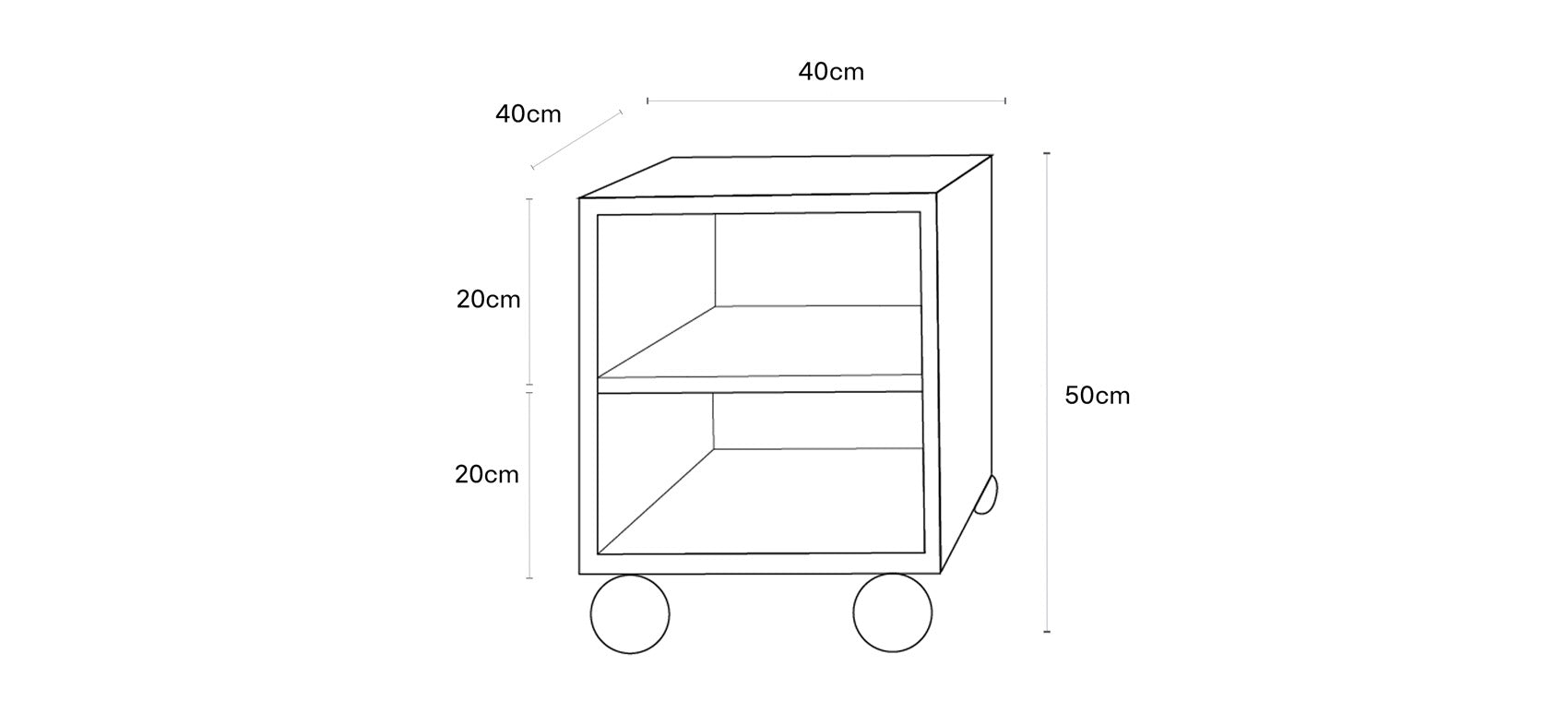 Assembled Dimensions: Height 50cm, Width 40cm, Depth 40cm, Shelf Height: 20cm